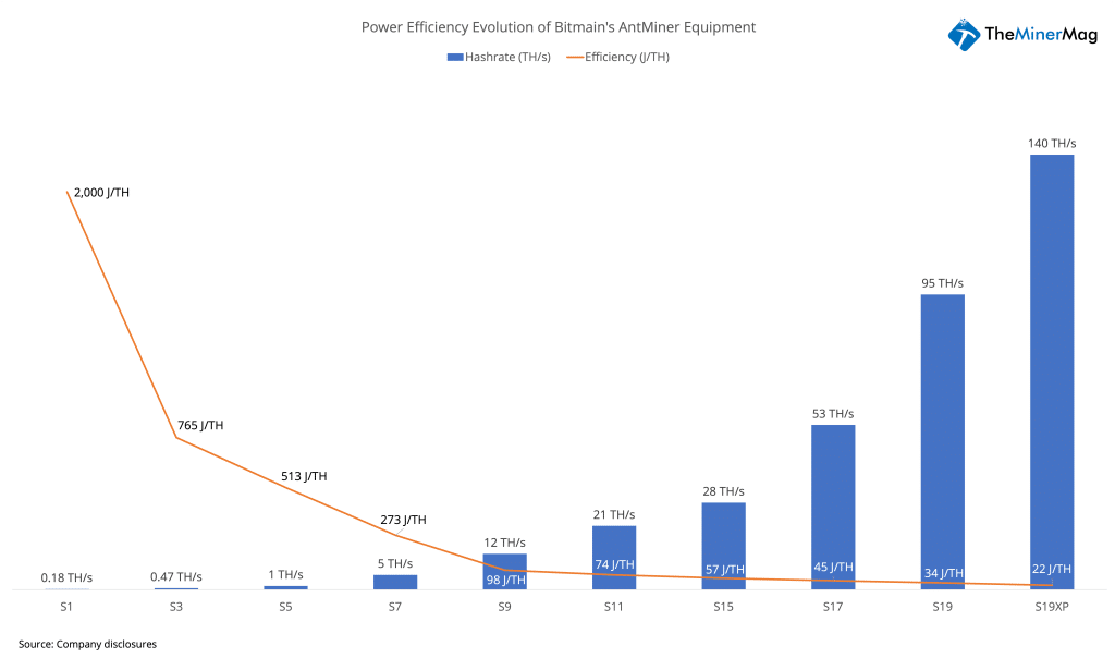 But regardless of manufacturing business models, one thing certain is that the power efficiency of bitcoin ASIC chips and miners over the past decade has significantly improved.