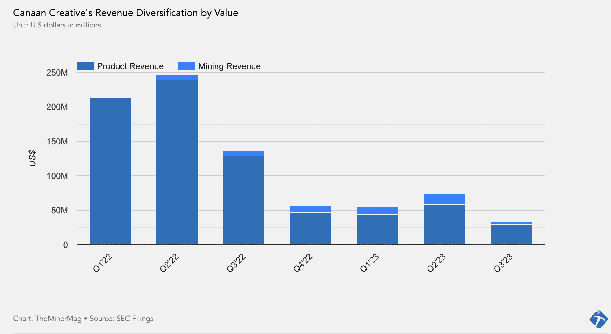 As previously reported, Canaan’s product revenue dropped by 48% in Q3 on a quarter-over-quarter basis, citing “increased pricing competition and a noticeable softening in purchasing power on the demand front.”