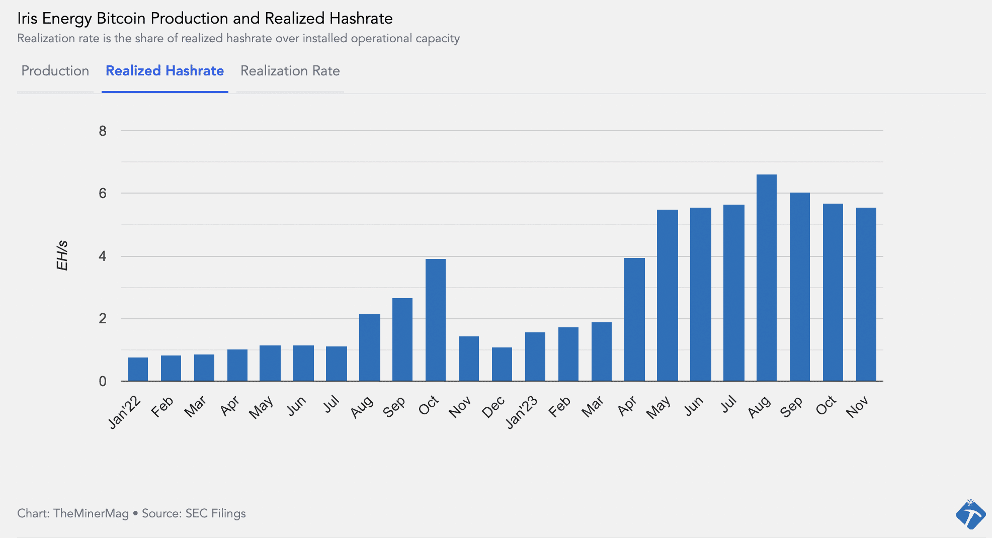 Iris Energy’s bitcoin production capacity took a notable hit in late 2022 as the company defaulted on two equipment financing loans totaling $105 million, which had approximately 3.7 EH/s of miners as collateral. These loans were borrowed from NYDIG in 2021 and early 2022.