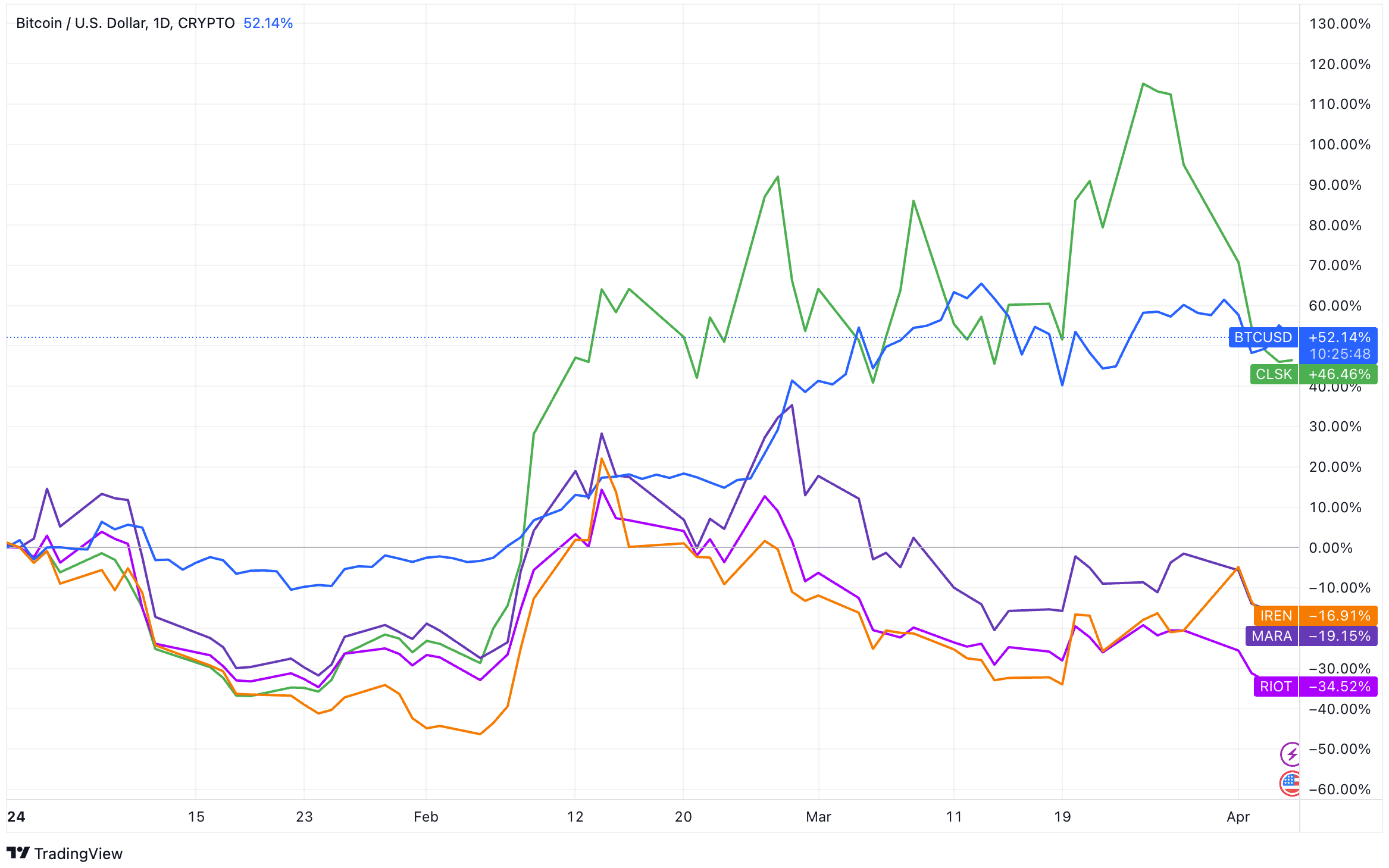 Large-scale public bitcoin mining firms with ambitious growth plans in North America have raised more funds from stock offerings in Q1 alone than they did during the second half of 2023.